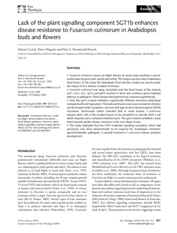 Lack of the plant signalling component SGT1b enhances disease resistance to Fusarium culmorum in Arabidopsis buds and flowers.