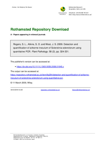 | Additional information | [Rogers, S. L.; Atkins, S. D.; West, J. S.] Rothamsted Res, Harpenden AL5 2JQ, Herts, England |