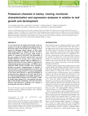 Potassium channels in barley: cloning, functional characterization and expression analyses in relation to leaf growth and development