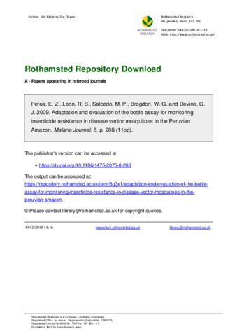 Adaptation and evaluation of the bottle assay for monitoring insecticide resistance in disease vector mosquitoes in the Peruvian Amazon