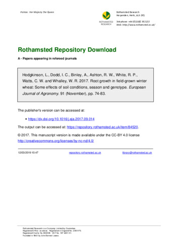 Root growth in field-grown winter wheat: Some effects of soil conditions, season and genotype.
