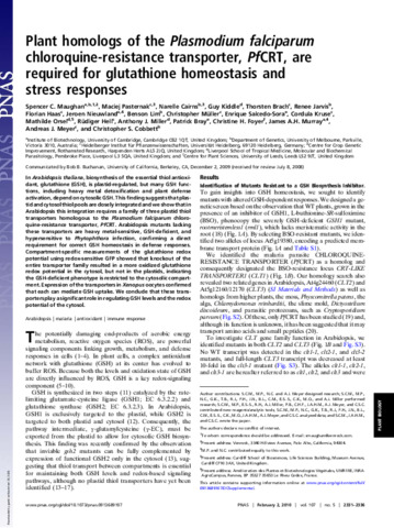 Plant homologs of the Plasmodium falciparum chloroquine-resistance transporter, Pf CRT, are required for glutathione homeostasis and stress responses.