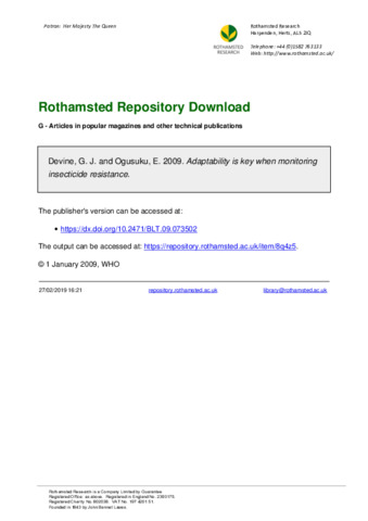 Adaptability is key when monitoring insecticide resistance.