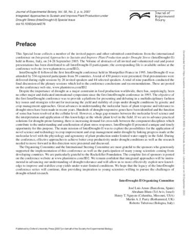 Preface: Integrated approaches to sustain and improve plant production under drought stress (InterDrought-II) (Journal of Experimental Botany Special Issue).