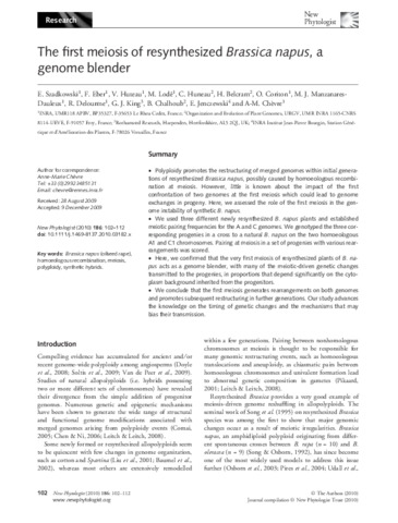 | Additional information | [Szadkowski, E.; Eber, F.; Huteau, V.; Lode, M.; Coriton, O.; Manzanares-Dauleux, M. J.; Delourme, R.; Chevre, A-M.] INRA, APBV UMR118, F-35653 Le Rheu, France; [Huneau, C.; Belcram, H.; Chalhoub, B.] UEVE, CNRS 8114, UMR INRA 1165, URGV, F-91057 Evry, France; [King, G. J.] Rothamsted Res, Harpenden AL5 2QJ, Herts, England; [Jenczewski, E.] INRA, Inst Jean Pierre Bourgin, Genet & Ameliorat Plantes Stn, F-78026 Versailles, France |