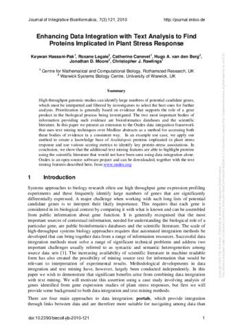 Enhancing data integration with text analysis to find proteins implicated in plant stress response.