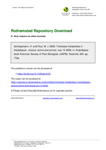 Trehalose metabolites in Arabidopsis - elusive, active and central: July 14 2009.