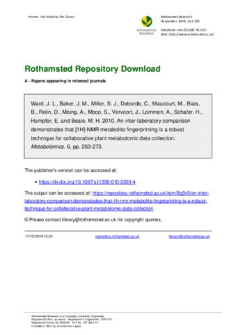 Ward, Jane, Baker, J. M., Miller, S. J., Deborde, C., Maucourt, M., Biais, B., Rolin, D., Moing, A., Moco, S., Vervoort, J., +4 more...Lommen, A., Schafer, H., Humpfer, E. and Beale, Mike