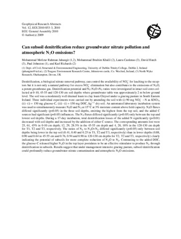 Can subsoil denitrification reduce groundwater nitrate pollution and atmospheric N2O emissions?