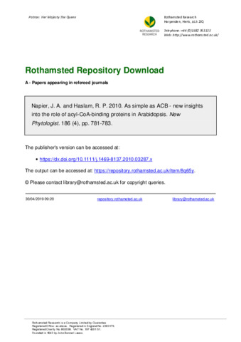 As simple as ACB - new insights into the role of acyl-CoA-binding proteins in Arabidopsis.