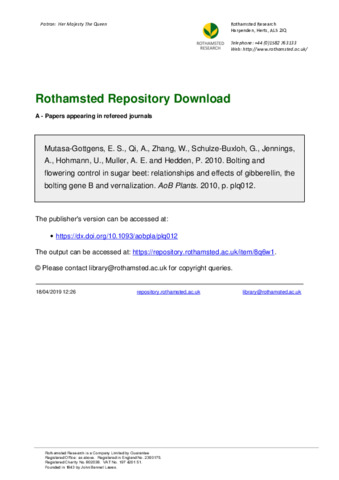 Bolting and flowering control in sugar beet: relationships and effects of gibberellin, the bolting gene B and vernalization.