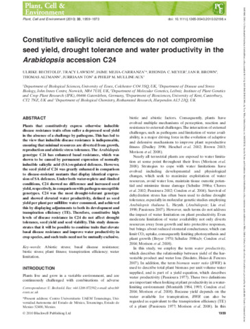 Constitutive salicylic acid defences do not compromise seed yield, drought tolerance and water productivity in the Arabidopsis accession C24