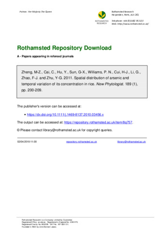 | Additional information | Natural Science Foundation of China [20720102042] ; Ministry of Science and Technology [2009DFB90120] ; CAS/SAFEA [KZCX2-Yw-T08] [Zheng, Mao-Zhong; Cai, Chao; Cui, Hao-Jie; Li, Gang; Zhu, Yong-Guan] Chinese Acad Sci, Inst Urban Environm, Key Lab Urban Environm & Hlth, Xiamen 361021, Peoples R China; [Hu, Ying; Sun, Guo-Xin; Zhu, Yong-Guan] Chinese Acad Sci, Ecoenvironm Sci Res Ctr, Beijing 100085, Peoples R China; [Williams, Paul N.] Univ Lancaster, Lancaster Environm Ctr, Lancaster LA1 4YQ, England; [Zhao, Fang-Jie] Rothamsted Res, Dept Soil Sci, Harpenden AL5 2JQ, Herts, England |
