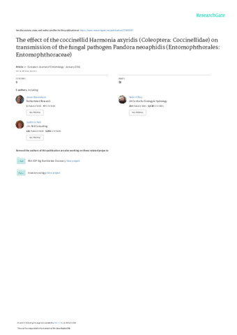 The effect of the coccinellid Harmonia axyridis (Coleoptera: Coccinellidae) on transmission of the fungal pathogen Pandora neoaphidis (Entomophthorales: Entomophthoraceae).