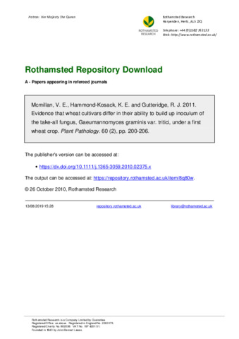 Evidence that wheat cultivars differ in their ability to build up inoculum of the take-all fungus, Gaeumannomyces graminis var. tritici, under a first wheat crop