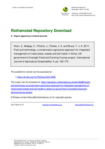 Push-pull technology: a conservation agriculture approach for integrated management of insect pests, weeds and soil health in Africa: UK government's Foresight Food and Farming Futures project