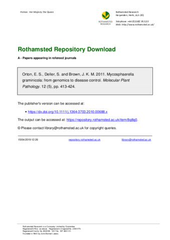 | Additional information | [Orton, Elizabeth S.; Brown, James K. M.] John Innes Inst, Dept Dis & Stress Biol, Norwich NR4 7UH, Norfolk, England; [Deller, Sian] Rothamsted Res, Ctr Pest & Dis Management, Harpenden AL5 2JQ, Herts, England |
