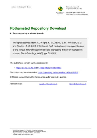 | Additional information | [Thirugnanasambandam, A.; Wright, K. M.; Whisson, S. C.; Newton, A. C.] Scottish Crop Res Inst, Plant Pathol Programme, Dundee DD2 5DA, Scotland; [Atkins, S. D.] Rothamsted Res, Plant Pathol & Microbiol Dept, Harpenden AL5 2JQ, Herts, England |