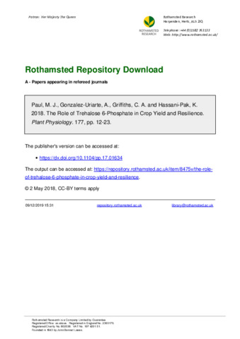 The Role of Trehalose 6-Phosphate in Crop Yield and Resilience