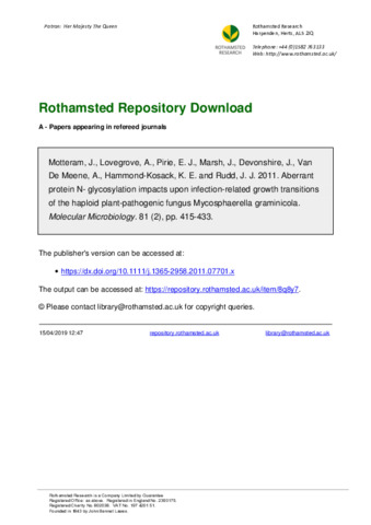 Aberrant protein N- glycosylation impacts upon infection-related growth transitions of the haploid plant-pathogenic fungus Mycosphaerella graminicola