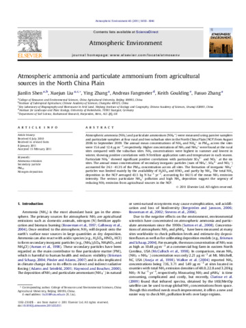 Atmospheric ammonia and particulate ammonium from agricultural sources in the North China Plain.