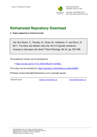 | Additional information | [van den Bosch, F.; Hobbelen, P.] Rothamsted Res, Harpenden AL5 2JQ, Herts, England; [Paveley, N.] ADAS High Mowthorpe, Dugglesby YO17 8BP, England; [Shaw, M.] Univ Reading, Sch Biol Sci, Reading RG6 6AS, Berks, England; [Oliver, R.] Curtin Univ Technol, ACNFP, Bentley, WA 6102, Australia |