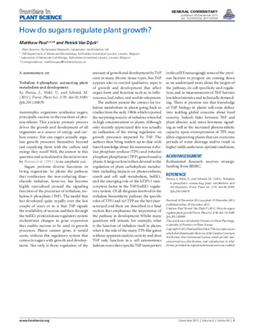 How do sugars regulate plant growth? A commentary on 'Trehalose 6-phosphate: connecting plant metabolism and development' by Ponnu, J. et al. (2011) Front. Plant Sci. 2:70