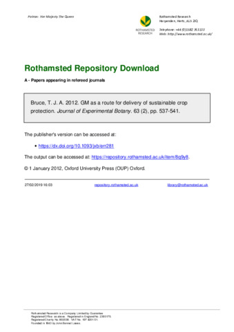 GM as a route for delivery of sustainable crop protection