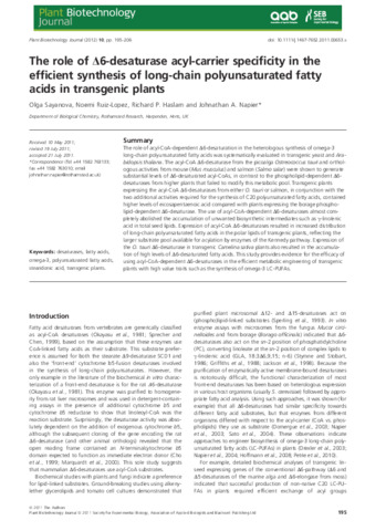 The role of delta6-desaturase acyl-carrier specificity in the efficient synthesis of long-chain polyunsaturated fatty acids in transgenic plants