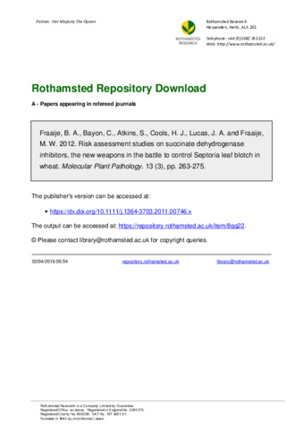 | Additional information | [Fraaije, Bart A.; Bayon, Carlos; Atkins, Sarah; Cools, Hans J.; Lucas, John A.] Rothamsted Res, Plant Pathol & Microbiol Dept, Harpenden AL5 2JQ, Herts, England; [Fraaije, Marco W.] Univ Groningen, Biochem Lab, Groningen Biomol Sci & Biotechnol Inst, Groningen, Netherlands |