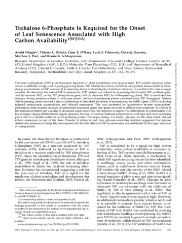 Wingler, A., Delatte, T. L., O'hara, L. E., Primavesi, Lucia, Jhurreea, D., Paul, Matthew and Schluepmann, H.
