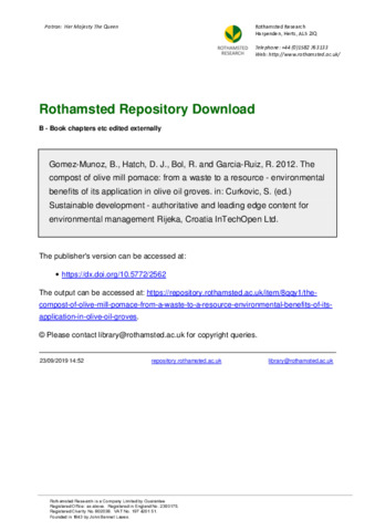 The compost of olive mill pomace: from a waste to a resource - environmental benefits of its application in olive oil groves.