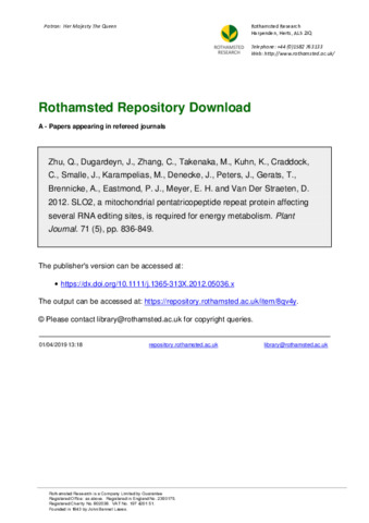 SLO2, a mitochondrial pentatricopeptide repeat protein affecting several RNA editing sites, is required for energy metabolism