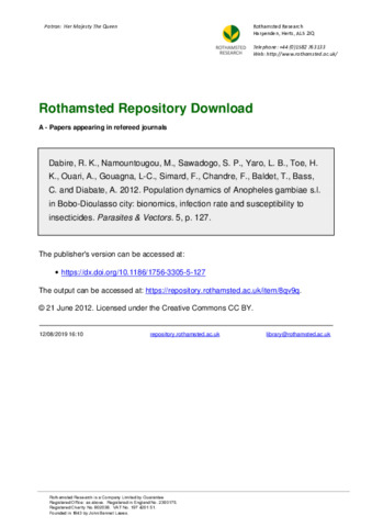 Population dynamics of Anopheles gambiae s.l. in Bobo-Dioulasso city: bionomics, infection rate and susceptibility to insecticides