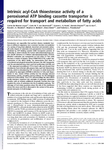 De Marcos Lousa, C., Van Roermund, C. W. T., Postis, V. L. G., Dietrich, D., Kerr, I. D., Wanders, R. J. A., Baldwin, S. A., Baker, A. and Theodoulou, Freddie