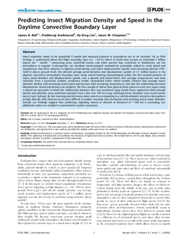 Predicting insect migration density and speed in the daytime convective boundary layer.