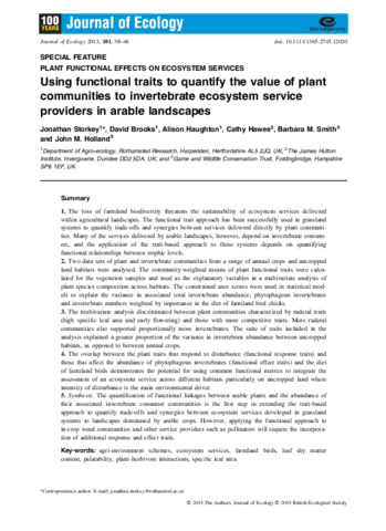 Using functional traits to quantify the value of plant communities to invertebrate ecosystem service providers in arable landscapes