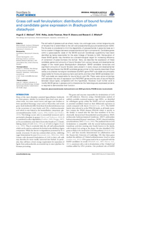 Grass cell wall feruloylation: distribution of bound ferulate and candidate gene expression in Brachypodium distachyon.