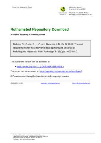| Additional information | FEDER - through the Programa Operacional Factores de Competitividade - COMPETE ; national funds through FCT Fundacao para a Ciencia e a Tecnologia [PTDC/AGR- AAM/103873/2008] ; FCT-MCTES by QREN through the Programa Operacional Potencial Humano [SFRH/BD/24275/2005] ; Biotechnology and Biological Sciences Research Council [Maleita, C.; Abrantes, I.] Univ Coimbra, Dept Life Sci, IMAR CMA, P-3004517 Coimbra, Portugal; [Curtis, R.] Rothamsted Res, Plant Pathol & Microbiol Dept, Harpenden AL5 2JQ, Herts, England |
