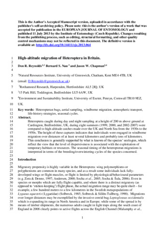 High-altitude migration of Heteroptera in Britain.