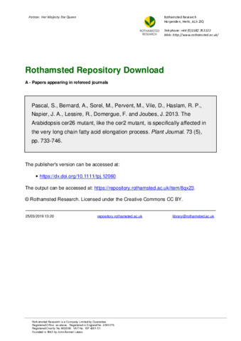 | Additional information | [Pascal, Stephanie; Bernard, Amelie; Sorel, Maud; Lessire, Rene; Domergue, Frederic; Joubes, Jerome] Univ Bordeaux, Lab Biogenese Membranaire, UMR5200, F-33000 Bordeaux, France; [Pascal, Stephanie; Bernard, Amelie; Sorel, Maud; Lessire, Rene; Domergue, Frederic; Joubes, Jerome] CNRS, Lab Biogenese Membranaire, UMR5200, F-33000 Bordeaux, France; [Pervent, Marjorie; Vile, Denis] INRA SupAgro, LEPSE, UMR759, F-34060 Montpellier, France; [Haslam, Richard P.; Napier, Johnathan A.] Rothamsted Res, Harpenden AL5 2JQ, Herts, England |