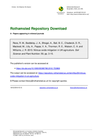 Rees, R. M., Baddeley, J. A., Bhogal, A., Ball, B. C., Chadwick, Dave, Macleod, M., Lilly, A., Pappa, V. A., Thorman, R. E., Watson, C. A. and +1 more...Williams, J. R.