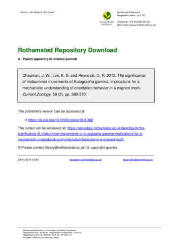 The significance of midsummer movements of Autographa gamma: implications for a mechanistic understanding of orientation behavior in a migrant moth.