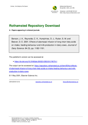 | Keywords | fat, Dairy cows, Intake, rumination, midlactation, rapeseed oil, Ruminants, Metabolism, lactation, Performance |