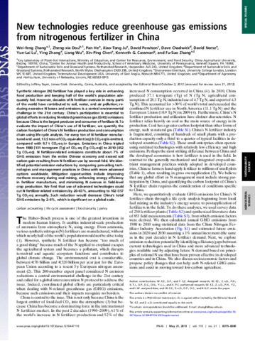New technologies reduce greenhouse gas emissions from nitrogenous fertilizer in China