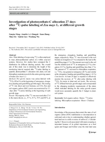 Investigation of photosynthate-C allocation 27 days after 13C-pulse labeling of Zea mays L. at different growth stages