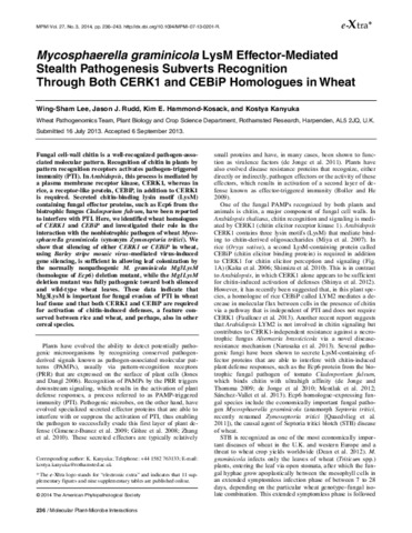Mycosphaerella graminicola LysM effector-mediated stealth pathogenesis subverts recognition through both CERK1 and CEBiP homologues in wheat.