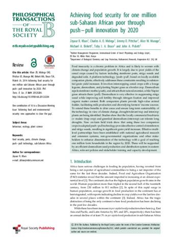 Achieving food security for one million sub-Saharan African poor through push-pull innovation by 2020.