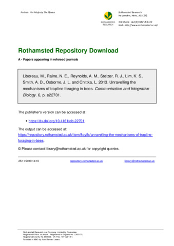 Liboreau, M., Raine, N. E., Reynolds, Andy, Stelzer, R. J., Lim, Jason, Smith, Alan, Osborne, J. L. and Chittka, L.