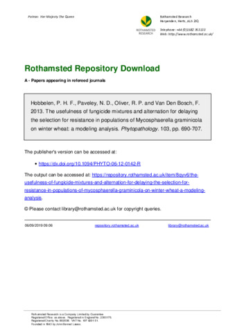 The usefulness of fungicide mixtures and alternation for delaying the selection for resistance in populations of Mycosphaerella graminicola on winter wheat: a modeling analysis.